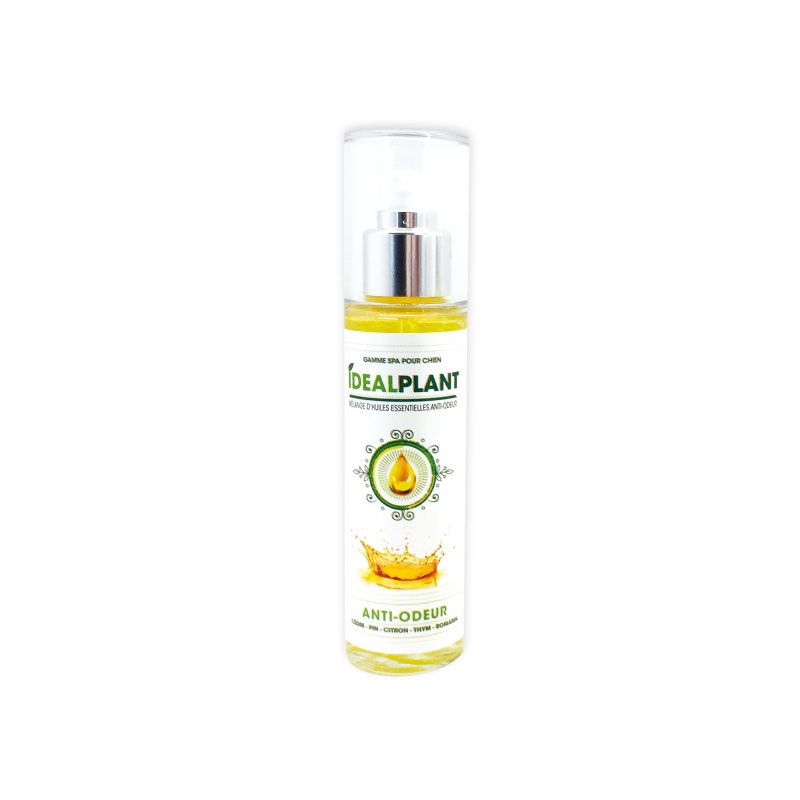 Retrouvez notre huile essentielle anti-odeur Idealplant pour chien.